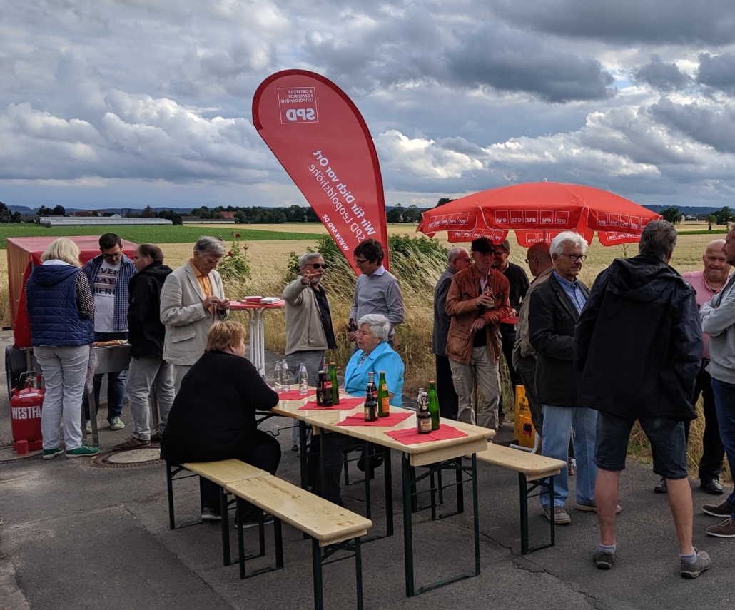 Martin Hoffmann konnten die Nachbarschaft der Friedenstraße/Kurze Straße kennenlernen. Eingeladen hatte der SPD Ortsverein Leopoldshöhe-Nord. Zahlreiche Anwohnerinnen und Anwohner sind der Einladung gefolgt. Während die frischen Bratwürstchen auf dem Grill bruzzelten, stelle sich Martin Hoffmann den Fragen und lauschte den Wünschen der BürgerInnen. Ein gemütlicher Abend, von dem er viele interessante Anregungen mit nach Hause nahm.